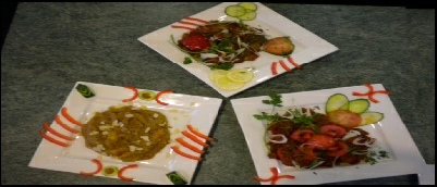 This dish is spiced with herbs, cashew nuts and garnished with tomatoes and onions (slightly hot)